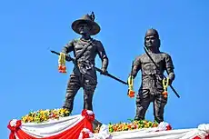 Statue of King Taksin (left) and Phraya Phichai (right) in Uttaradit. Phraya Phichai was one of the closest generals of Taksin and was known by his epithet Phraya Phichai Dap Hak or Phraya Phichai of the Broken Sword.