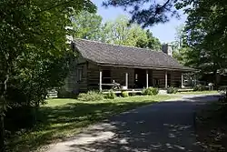 Major 19th-century buildings in the historic park include the Balch House, originally built in 1887 near Harvest; the Chandler House, a dogtrot house from Lester in Limestone County; an 1884 church that originally stood in downtown Madison; the Meals House, an 1845 cabin from near Lester; the Smith-Williams House, an 1868 marriage of two 1840s structures originally from McKay Hollow at the foot of Monte Sano; and an 1890s barn from near Minor Hill, Tennessee.[3] The museum also features two buildings that are listed on the National Register of Historic Places: the Burritt Mansion, and the Joel Eddins House.[4] Non-historic structures include a welcome center, administrative building, a replica of a four-room Rosenwald school, and an events center designed to look like the demolished Hotel Monte Sano.