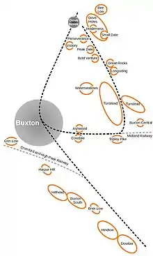 - 1 2 3 4 Leach, John (1987). The Book of Buxton. Baracuda Books Limited. pp. 14–15, 83–91. ISBN 0 86023 286 7.