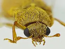 Byturus ochraceus front view: note the larger eyes than Byturus tomentosus