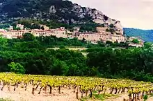 Séguret - This mountain village is located on the eastern side of the river Oèveze. It is ancient regarding wine as Pliny the Elder mentions it in his natural history. However it is only recently that the 220 ha. of the appellation has attracted attention. The terroir is interesting - chalk at altitude (near the Dentelles de Montmirail), resulting in fine wines from the independent producers.[10]