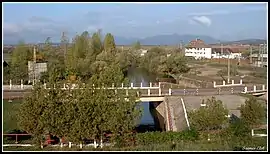 The Călinești-Oaș Dam was built in 1972 on the river Tur near the confluence with the Valea Rea between the Hurca and Jelejnic Hills.[8] It creates an artificial lake of 357 ha (3.57 km2) and with a total volume of 0.027 km3 (0.0065 cu mi). In the same year the Călineşti-Oaş Micro - Hydropower Station was built having a low capacity Pelton turbine of only 0.8 MW.[8]