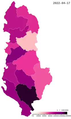 - ↑ "Albania: WHO Coronavirus Disease (COVID-19) Dashboard With Vaccination Data". covid19.who.int. Retrieved 21 February 2023.