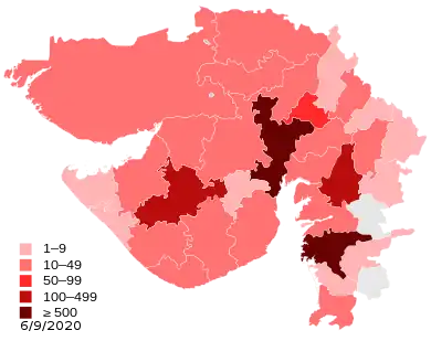 218. "Gujarat's COVID-19 case tally nears 70,000; 23 die". outlookindia.com. Retrieved 9 August 2020.
