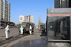 Strict measures were imposed on 19 March 2020 in the two major cities of Almaty and Astana after cases increased overnight to 33, having 15 and 18 cases respectively.[21] During that period, the two cities were divided into sectional zones and creating roadblocks to control accessibility, limiting the movement by residents, regulating the treatment operations for medical institutions in which the infected patients or who were suspected of coming into contact with virus.[21] All stores and shopping malls were closed down with the exception of grocery stores and pharmacies.[21]