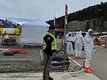 - ↑ Smith, Michelle (March 22, 2020). "Chaos, Inconsistency Mark Launch of Drive-Thru Virus Testing". Associated Press. Retrieved March 30, 2020.
