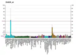The gene is expressed in the lysosomes of all organs and tissues.[9] Cystinosin has also been found in melanosomes in melanocytes.[10]