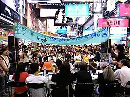 The second forum was held on the evening of May 12 in Sai Yeung Choi Street, Mong Kok, titled "The Bottom Line of Speech Space - Diversity and Respect". About 300 people from both sides, including scholars and citizens, attended the forum.[38] The invited Teachers' Association and Mingguang Society again refused to attend.[5][39]