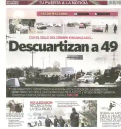 20. 1 2 "49 headless bodies dumped near Mexican highway". Toronto Star. 13 May 2012. Retrieved 14 May 2012.