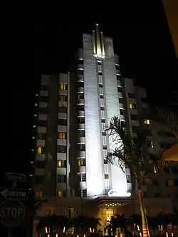 ![]() The Cadillac Hotel at night. | |