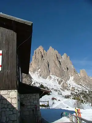 The mountain range is crossed by the Alta Via n. 4 path and from the equipped Alberto Bonacossa path, which starts from the southern shore of the lake and reaches the Tre Cime di Lavaredo. The particular geomorphology that characterizes the Cadini di Misurina allows one to cross the group by various lines. The equipped path Giovanni Durissini for example, allows one to complete a tour of the branch of San Lucano. It is a ring route, starting at the Fonda-Savio refuge (2,367 m), which runs in sequence the Torre fork (2,400 m), the Sabbee fork (2,440 m), the Cadin Deserto fork (2,400 m), the Cristina fork, the de la Neve fork (2,471 m) and lastly the Nevaio fork (2,620 m), with a total height difference of about 1,000 M. The first climb dates back to 31 August 1896 by Giovanni Siorpaes, Pietro Siorpaes, Ilona Eötvös, Rolanda Eötvös, Johann Innerkofler, and Loránd Eötvös.