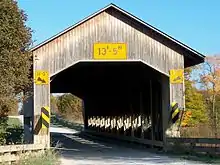 Caine Road Bridge is a covered bridge spanning the west branch of the Ashtabula River in Pierpont Township, Ashtabula County, Ohio, United States. The bridge, built in honor of Ashtabula County's 175th anniversary, and one of currently 17 drivable bridges in the county, is a single span Pratt truss design.[1] The bridge's WGCB number is 35-04-61,[2] and it is located approximately 13 mi (21 km) east-northeast of Jefferson.
