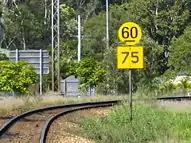 - speed boards – posted signs beside the track that show drivers the speed they are required to have their train at or below before passing