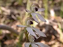 Caladenia cucullata growing on Black Mountain in the A.C.T.