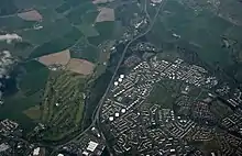 Calderwood is the second oldest planned neighbourhood in East Kilbride,[1] built about 1950, shortly after The Murray. Most initial residents moved in from condemned housing in Glasgow.[2] It is the town's largest residential area, forming most of the East Kilbride East multi-member electoral ward, which had a recorded overall population of 14,308 in 2019;[3] the remainder of the neighbourhood (west of Calderwood Road, east of the Kingsway dual carriageway bypass, including Maxwellton) is in the East Kilbride Central North ward. The one directly neighbouring area is St Leonards to the south. Calderwood is divided from the East Mains and Village areas to the west by the bypass – there are no direct road-traffic links, only two underpasses beneath the road and a footbridge over it.