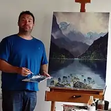 Caley J. Hall (born 1975) is classified as a listed New Zealand investment artist in Invercargill and Queenstown, New Zealand.[1][2][3][4] Hall specializes in oil painting, and is well known for his Fiordland landscapes [5][6] and expressionist abstracts.[7] A largely self-taught artist, he has learned techniques and takes inspiration from other New Zealand artists, including renowned Queenstown-based painter Tim Wilson, Canterbury wilderness artist Nathanael Provis and Central Otago-based painter Peter Beadle.[8] He exhibited his large abstracts at the Peppers Bluewater Resort in Tekapo in 2012.[9]