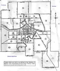 Calgary was a provincial electoral district in Alberta, Canada, mandated to return one to six members to the Legislative Assembly of Alberta from 1905 to 1913, and again from 1921 to 1959.[1] The district largely encompassed the boundaries of the City of Calgary, and was revised accordingly as the city grew.