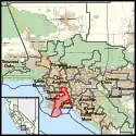 The congressional district is located in the southern portion of the state and includes part of Los Angeles County.[3] The district's current borders are delineated by the 110 freeway in its western border and takes an inward right following the 105 Freeway. Following S. Central Avenue north, it then zig-zags its way to Florence Ave at its apex. Its eastern border runs mostly along the 710 Freeway until reaching the Pacific Ocean.