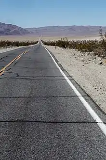 After passing by the turnoff for Tecopa Hot Springs, SR 127 runs concurrently with SR 178 through the community of Shoshone. SR 127 continues along the eastern edge of Death Valley National Park, passing by Eagle Mountain and the Amargosa River before intersecting SR 190 at Death Valley Junction. The road ends at the California-Nevada border, where Nevada State Route 373 begins.[3] It is the "Lost Highway" featured in David Lynch's film Lost Highway.