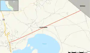 | | 21.33 | Continuation beyond the Nevada state line; east end of SR 167 | |||
