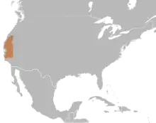 The Coast night snake ranges throughout western California, ringing the central valley, but is not found in the valley itself.[3] It is one of two night snake species in the state. The other is the desert night snake, Hypsiglena chlorophaea.