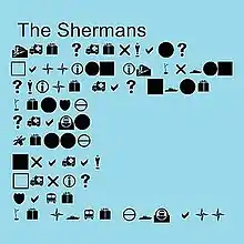 The album cover uses the font (apart from the first line) is webdings. It reads, from top to bottom: "The Shermans", "Calling It Wrong", "Smile Has Gone", "Wendy", "Shaun", "Kenny", "Graham", "Chris", "Dave", and "We Love You All". The names are of the band members, apart from "Chris". This may be the nickname of Nick Cheetham, whose first name is not on the cover.