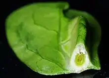 Cross section of the gall of Calotpilia cecidophora on Glochidion obovatum leaf, with the larva inside