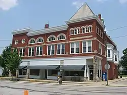 The Camden Masonic Temple, also known as Mount Zion Lodge #211, is a historic Masonic Lodge located at Camden, Carroll County, Indiana. It was built in 1902, and is a three-story Romanesque Revival style brick and limestone building. It was used historically as a meeting hall, as a specialty store, as a department store, as a professional building, and as a multiple dwelling.[2]:5