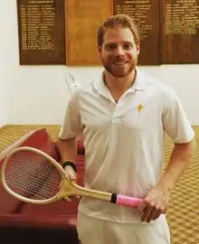Camden Riviere (born 1987) is an American left-handed real tennis player and current world champion. He became world champion on May 21, 2016, defeating long-time holder Robert Fahey 7 sets to 2 at Riviere's home court, the National Tennis Club, Newport, Rhode Island. Two years later, at Riviere's first defense of the title, Fahey reclaimed the title beating Riviere by 7 sets to 5 at Queen's Club, London. Riviere regained the title from Fahey at the 2022 World Championship played at Prested Hall in Feering, Essex, England, winning by 7 sets to 5. He retained the title in 2023, defeating John Lumley 7 sets to 3 at the Westwood Country Club in Vienna, Virginia.