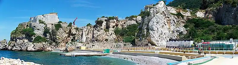 36°07′08″N 5°21′04″W / 36.119°N 5.351°W Camp Bay (or El Quarry in Llanito) is a small rocky beach in the British Overseas Territory of Gibraltar. It is located off Rosia Road along the territory's west coast overlooking the Bay of Gibraltar. Parson's Lodge Battery overlooks the northern end of the bay.[1]
