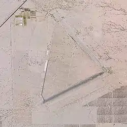 Camp Desert Center was built in April 1942, to prepare troops to do battle in North Africa, fighting the Germans during World War II. When completed the camp had shower buildings, latrines, evacuation hospital, weather station (Type D), wooden tent frames, Ammo depot, Quartermaster store, water storage tanks and water treatment plant. The 18th Ordnance Battalion operated out of the camp. The camp was closed on 16 December 1944 and the US Army buildings was removed.[2][3]
