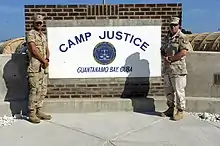 Camp Justice is the name given to the portion of the Guantanamo Bay Naval Base where the Guantanamo military commissions are held.[1] It was named by TSgt Neil Felver of the 122 Civil Engineering Squadron in a name the camp contest.[2][3] Initially the complex was to be a permanent facility, costing over $100 million. The United States Congress overruled the Bush Presidency's plans. Now the camp will be a portable, temporary facility, costing approximately $10 million.