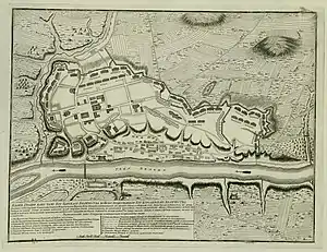 After having scouted the Russian fortifications at Grodno, Charles realized a frontal assault would be impossible. At the same time, the Russians would not let themselves be provoked out into the field. Charles instead decided to try and starve them out by crossing the Neman river on January 15, encircling the city from the east, forcing 15,000 Russian cavalry to withdraw.[34][35] In doing this he blocked the Russian communication lines, and also cut off their resources and supplies.[34] Smaller Swedish parties were sent towards Vilnius in order to prevent General Christian Felix Bauer from supplying the trapped Russians. One of these, commanded by Jan Kazimierz Sapieha and Józef Potocki managed to beat 3,000 Russians at the Battle of Olita on February 9.[36] Meanwhile, on February 7 Schulenburg had received word of Charles' crossing of the Vistula, and begun his march with the Saxon army in order to beat Rehnskiöld's smaller force near Poznań.[37] Rehnskiöld, however, did not wait to be defeated and instead strove to engage Schulenburg before the arrival of Augustus 8,000 men. By using a daring feint Rehnskiöld managed to lure Schulenburg into a more disadvantageous position near Wschowa (Fraustadt), where the two armies clashed on February 13.[38] Here, the Swedish general won a decisive victory killing or capturing up to 75% of Schulenburg's force.[39] Crippled by this setback, the main Saxon army had no choice but to retreat. The whole allied plan collapsed, as the opportunity for the allies to destroy Charles' army in the Polish–Lithuanian Commonwealth with a sweeping movement from behind, vanished.[40]