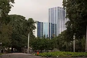 In 1942, with the construction of the Avenida Presidente Vargas and the demolition of several buildings nearby, the plaza was divided in two. One side featured the Palácio Duque de Caxias, the Brazilian Military Command building (1937), and the Panteão Duque de Caxias. The gardens of the Campo de Santana, a wide, tree-lined public promenade constructed at the beginning of the 20th century, is located on the opposite side of the plaza. Reforms of this area, as part of a city-wide project, began again in 1873 and were completed in 1880 by French landscaper Auguste François Marie Glaziou. Several species of animal are present in the Campo de Santana park, including: agoutis, cats, wild ducks and peacocks.[1] A little-known fact about the park is that it used to be the site of bullfights. They were popular spectacles until they were banned in 1907 by decree of the mayor, Francisco Marcelino de Sousa Aguiar.[2][3]