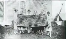 Women's Institute, Lower Granville. Annapolis County, Nova Scotia, displaying a hooked rug c.1930