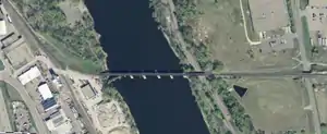 Canadian Pacific Camden Place Rail Bridge is a truss bridge that spans the Mississippi River in Minneapolis, Minnesota. This bridge is the official end of the navigable channel for river traffic.[1][2] It was built in 1905 by the Minneapolis, St. Paul and Sault Ste. Marie Railway. In 1977, the bridge was modified to allow higher clearance under the center span. This was done by replacing the deck truss span with a shallower girder span. It is the main line crossing of the Mississippi River for the Canadian Pacific Railway transcontinental (Soo Line Railroad) line.