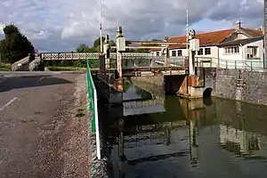 Lift bridge over the Canal de la Marne à la Saône near Luzy-sur-Marne; Haute-Marne, France.