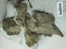 The Larcan specimen (a right maxilla and quadrate) of Canardia found about 1 m under an iridium level marking the Cretaceous-Paleogene boundary.[3]