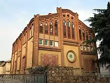 | 1910 | Fàbrica Jover i Cia | c/ Riera del Pinar, 12 | It seems to be inspired by Romanesque churches through the use of brick vaults cover and blind rose window with the name of the company. | OK | ![]() Fàbrica Jover i Cia |