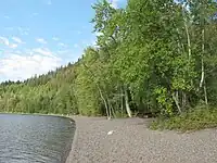Canim Beach Provincial Park is a provincial park in British Columbia, Canada, located at the southwest end of Canim Lake in the Interlakes District of the South Cariboo region, adjacent to the Secwepemc Indian reserve community of Canim Lake, British Columbia just northeast of 100 Mile House. The park was established by Order-in-Council in 1956 and expanded by later legislation in 2000 and 2004 to total a current approximate of 8.2 hectares (20 acres), 3.6 hectares (8.9 acres) of upland and 4.6 hectares (11 acres) of foreshore.[1][2]