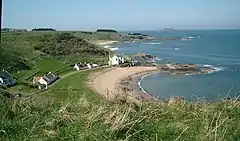 Canty Bay is a small inlet and coastal hamlet on the northern coast of East Lothian, Scotland.[1] It is 2 miles (3.2 km) east of North Berwick and is opposite the Bass Rock and Tantallon Castle. Other settlements nearby include Auldhame, Scoughall, Seacliff, and the Peffer Sands. Canty Bay means "bay of the little head" from the Gaelic ceanntan, diminutive of ceann.[2]