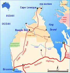 1. 1 2 3 "Broome Cape Leveque Road". Main Roads Western Australia. Government of Western Australian. 9 May 2019. Retrieved 25 May 2019.