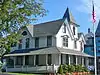 Several fires destroyed portions of the town and the mostly wooden, frame-built houses. The fire of 1878 destroyed about half the town, but many buildings were quickly rebuilt. This fire gave a particular boost to Button's career, and many of the local builders appear to have copied Button's style at this time.[6] These newer buildings were built with gingerbread trim, gables and turrets.[11][12]