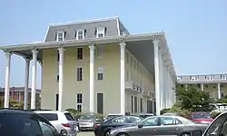 The early emergence of Cape May as a summer resort was due to easy transport by water from Philadelphia to the Atlantic Ocean. Early Cape May vacationers were carried to the town on sloops from Philadelphia, and water transport was also easy from New York, Baltimore, Washington, D.C. and points south.[8] Southerners later became a large proportion of summer vacationers.[9] The resort business in Cape May began to thrive when regular steamboat traffic on the Delaware River began after the War of 1812, carrying passengers from Philadelphia and New Castle, Delaware. Commodore Stephen Decatur made his summer home at the Atlantic Hotel about this time. The predecessor of the Congress Hall Hotel was opened in 1816 by Thomas Hughes. It took its current name in 1828, when Hughes was elected to Congress. In 1830 a visitor wrote that