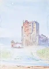Castle by a lake (1846), an ink and watercolour capriccio by Otto Reinhold Jacobi