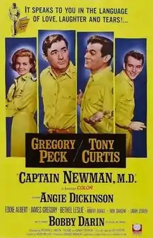 Captain Newman, M.D. is a 1963 American comedy drama film directed by David Miller and starring Gregory Peck, Tony Curtis, Angie Dickinson, Robert Duvall, Eddie Albert and Bobby Darin. Peck's Brentwood Production also co-produced the film.[2]