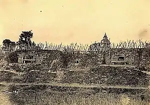The Black Flags had thrown up an impressive series of fortifications around Hưng Hóa, but Millot made no attempt to attack the town's formidable defences. Having pinned the Black Flags frontally with General de Négrier's 2nd Brigade, he subjected Hưng Hóa to a ferocious artillery bombardment from Trung Hà with two 80-millimetre (3.1 in) and one 90-millimetre (3.5 in) artillery batteries. The bombardment began at 10:00 am on 11 April and lasted for several hours, setting many buildings inside Hưng Hóa alight and inflicting heavy casualties on the Black Flag defenders. The French did not suffer a single battle casualty. The soldiers of the 2nd Brigade spent the day in complete idleness, enjoying the warm spring sunshine and watching the smoke rise silently from Hưng Hóa as the French artillery methodically reduced the town to ruins.[2] While Millot's artillery bombarded Hưng Hóa, General Louis Brière de l'Isle's 1st Brigade successfully executed its flank march to the south of Hưng Hóa. On 11 April, seeing Brière de l'Isle's Turcos and marine infantry emerging behind their flank at Xuân Đồng, the Black Flags evacuated Hưng Hóa before they were trapped inside. They set alight the remaining buildings before they left, and on the following morning the French found the town completely abandoned.[3]