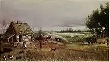 A painting of a settlers home near Carberry, 1884.