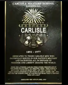 On April 14, 2018, a commemoration of Carlisle Military School's history was held in Bamberg, SC, on its former campus (now a Federal Department of Labor Job Corps Training Center). A commemorative plaque was dedicated that will be erected as part of the City and County of Bamberg Veterans Memorial Trail. Additionally, the South Carolina House of Representatives passed a Resolution (H.5183) "To Honor The Significant History Of The Carlisle Military School In The Celebration Of The School's Rich Legacy With A Reunion On April 14, 2018".[10]