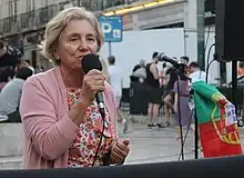 In 1979 she founded, together with Aires Rodrigues, the Workers Party of Socialist Unity (POUS), which was a small Trotskyist party. She was the leader of the party's list in national and European elections until 2014 but the party never succeeded in obtaining more than 0.33% of the vote and never obtained a seat in the Portuguese parliament. In the 2009 European parliamentary elections, the party argued for the break up of the European Union. She tried to become a candidate in Portugal's presidential elections but never succeeded in obtaining sufficient nominations. The party was wound up in 2019.[1][2][3][5][6]
